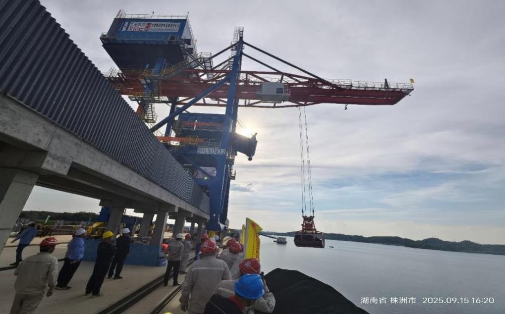湘江之畔,华新机电大唐华银株洲项目抓斗桥式卸船机近日完成首船接卸。这标志着湖南省“十四五”重大能源工程的关键配套项目——大唐华银株洲退城进郊2×100万千瓦扩能升级改造项目燃料供应保障的关键环节已经打通,项目进度取得重大进展,为电厂后续投产与高效运营奠定了坚实的基石。